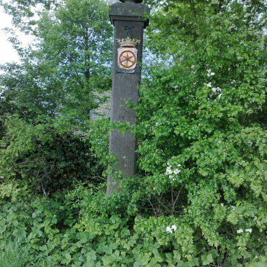Hardstenen grenspaal met het wapen en de naam van Heusden en het jaartal 1785.