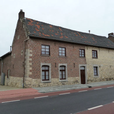 Hoeve van baksteen en Naamse steen; woonhuis met verdieping en een zadeldak, dat afgesloten is door een omblokte eindgevel. Ingang en benedenvensters met segmentbogen in Naamse steen en houten bovenvensters, 1781.