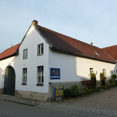 Hoeve van baksteen, mergel en vakwerk, gelegen aan een binnenplaats, XVIII- XIX. Witgeverfd. Boven de ingang een beeldnisje.