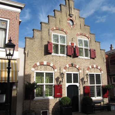 Pand met trapgevel met maskerkoppen als sluitstenen boven de vensters, XVIII. (Zie ook K.B.nr.6 d.d. 27 februari 1970).