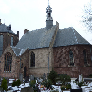 N.H. Kerk. Rechthoekig tufstenen koor, vorm uit de 14e eeuw. In 1913/4 uitgebreid. Gelegen op hoog kerkhof. Klokkenstoel met klok van onbekende gieter, diam. 40 cm.