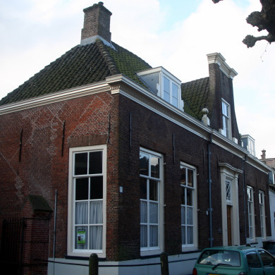 Burgemeestershuis; tussen metselwerk natuurstenen banden. Rechte kroonlijsten, 17e eeuw. Voordeur in trapgevel Ambachtshuis.