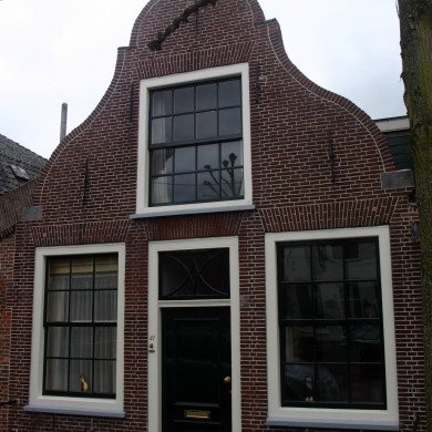 COMPLEX bestaande uit een WOONHUIS (1) (mon.nr. 38022) van een rietdekker met bijbehorende SCHUUR (2), die na een brand in 1867 is herbouwd. Bij het woonhuis is, blijkens een stichtingssteen in de geveltop, in 1794 een nieuwe voorgevel geplaatst voor een oudere bouwmassa. Sinds het einde van de 18de eeuw is het complex in bezit geweest bij het rietdekkersgeslacht Crispijn en was achter het woonhuis een bedrijfsgedeelte, dat werd gebruikt als werkplaats en opslagplaats. Voor de aan- en afvoer van produkten werd gebruik gemaakt van de Vinkesloot. Dit was van oorsprong een zwetsloot, die nadien tevens als vaarsloot is gebruikt en nu de oostelijke begrenzing vormt van het beschermde dorpsgezicht. Het woonhuis is in 1977 gerestaureerd; het bedrijfsgedeelte in 1988.