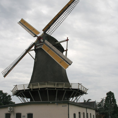 Voormalig KANTOOR (5) met rechthoekige plattegrond afgesloten door een plat dak. De gevels met gepleisterde plint zijn opgetrokken in kruisverband roodbruine baksteen. De gevel eindigt in een bakstenen fries met geprofileerde uitkragende rand.