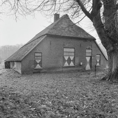 Boerderij, uit ca. 1800 met een schilddak en in de vensters roedenverdeling uit de bouwtijd. Luiken.