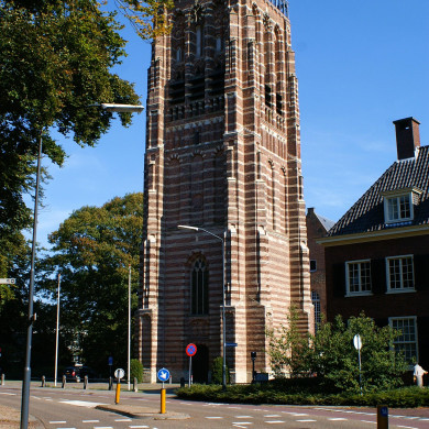 Toren der Ned.Herv.Kerk. Vierkante bakstenen toren van drie geledingen met haakse steunberen, de baksteen afgewisseld met lagen tufsteen. Boognissen in de wandvlakken en de steunberen. Gebouwd in 1560, hersteld in 1822 blijkens gedenksteen, nogmaals hersteld in 1958. Trommelspeelwerk van Addicks, 1937.