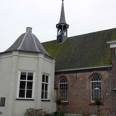N.H. Kerk, in 1610 gebouwde rechthoekige zaalkerk met torentje op het dak; aan de noordzijde een achtkante, onderkelderde uitbouw met tentdak, op de hoeken door pilasters versterkt, oorspronkelijk grafkapel, thans consistoriekamer. In de kerk een houten tongewelf, in de uitbouw een achtdelig ribgewelf. Eiken kansel met lezenaar, doophek en bank uit de 17e eeuw. Eenklaviers orgel, in 1857 gemaakt door J.J. Vollebregt. In torentje klok van H. Petit, 1803, diam. 61 cm. Mechanisch smeedijzeren torenuurwerk, voorzien van elektrische opwinding.