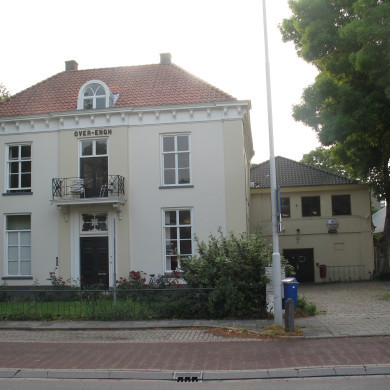 Huis "Overengh". Gepleisterd herenhuis met verdieping en omlopend schilddak met hoekschoorstenen. Steen: H.G.J.M(eier). 1852. Voorgevel met middenrisaliet en hoeklisenen. Boven de dubbele deur met gietijzeren panelen- versierd met Bacchus-puto en leeuwenmaskers en bovenlicht een balcon met consoles en ijzeren hek. Kroonlijst met voluutconsoles en gesneden rozetten. Vensters met 6- en 8-ruitsschuiframen.