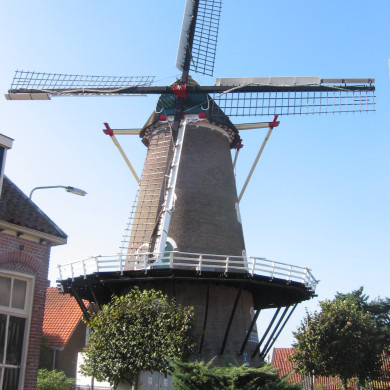 Korenmolen "De Vlijt". Ronde gemetselde stellingmolen uit 1879, gerestaureerd ca. 1952.