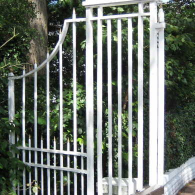 Tolhek, gesmeed ijzeren hek met gekroonde wapens Stirum en Warmond. 18e eeuw. Gelegen aan de Leidse trekvaart.