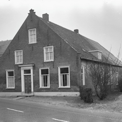 Boerderij van het Langstraatse type, met aan de voorzijde een tuitgevel, bekroond door een toppilaster; de ingang versierd met pilasters en een kroonlijst. Aan de achterzijde afgewolfd zadeldak, belegd met pannen. Begin 19e eeuw.