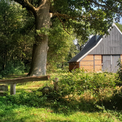 Vakwerkschuur. De vakwerkschuur bestaat onder meer uit een in aanleg midden 18e-eeuwse secundair verwerkte vakwerkconstructie met ankerbalkgebinten en grotendeels 19e-eeuwse baksteenvullingen, gedekt door een vrij hoog met pannen belegd zadeldak tussen met hout beschoten geveltoppen met windveren. In 2016 is de schuur verplaatst van het boerenerf Everlostraat 7 te Rossum naar landgoed Brecklenkamp te Lattrop.