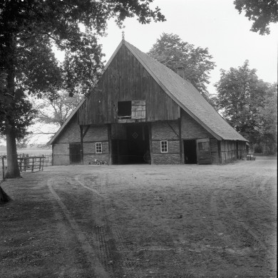 "Het Everloo". Rechter bouwhuis en hekpijlers van de v.m.havezathe. Boven de deur een steen met alliantiewapens Sloet-Van der Marck, gehouden door Griffioenen. Op de houten inrijpoort: Anno 1704 den 29 april. Twee paar forse Bentheimerstenen hekpijlers XVIII A.