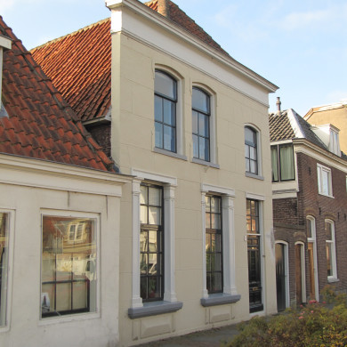 Pand met gepleisterde lijstgevel, bestaande uit beganegrond en schilddak, dat een geheel vormt met dat over het belendende nr 82. Vensters met negen- en zesruitsschuiframen. Deur met panelen en bovenlicht met levensboom. Eerste helft 19e eeuw.