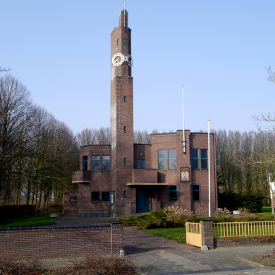 RAADHUIS ontworpen en gebouwd in de jaren 1928-'30 voor de plattelandsgemeente Usquert door H.P. Berlage volgens diens rationalistisch-architectonische uitgangspunten.
