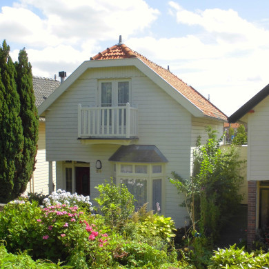 Vermoedelijk vroeg 20e eeuws houten HUIS (rabat) met zolderverdieping onder zadeldak met wolfeind. Terugliggende entree. Begane gronds aan de voorzijde erkerraam, boven een recentelijk gewijzigd balkon.