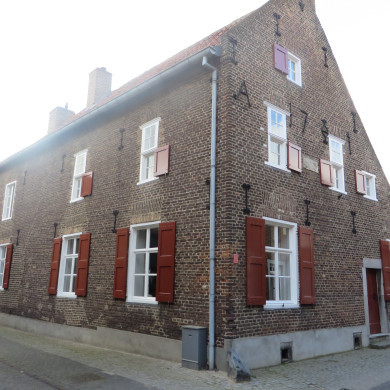 HUIS met zadeldak evenwijdig aan de straat. Voorgevel met uitgemetselde bloklijstversiering, dichtgemetselde ellipsboogpoort, rechthoekige geprofileerde ingangsomraming van hardsteen, segmentboogvensters in hardsteen en gevelsteen met 1803. Op de straathoek een schamppaal.