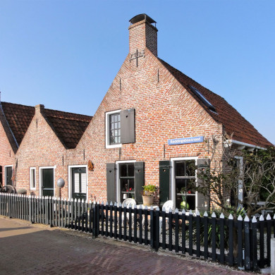 Huis vermoedelijk XIX A zonder verdieping onder door rode hollandse pannen gedekt zadeldak tussen puntgevels met vlechtingen en opgetrokken uit rode baksteen; vier-, zes- en negenruitsvensters, waarvan sommige met luiken; strokendeuren; gootlijst op klossen; staafankers.