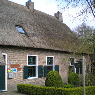 Gerestaureerde 17e eeuwse hoeve met stijl- en regelwerk, waartussen bakstenen vullingen. Vierdelig houten vensterkozijn met onderluikjes in de voorgevel. Houten kruiskozijnen in de zijgevel.