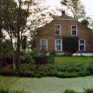 Gepleisterde boerderij, in oorsprong uit de 17e eeuw, onder zadeldak tussen puntgevels, waarvan de linker vlechtingen heeft en een gevelsteen met voluten en het opschrift: "De trouwe Herde, 1635". Het woongedeelte heeft verder met zijn zesruitsschuiframen in de vensters een 19e eeuws karakter.