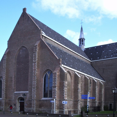 Ned. Herv. Kerk. Herbouwd XVIa na brand plm 1500. Kruiskerk zonder koor met open dakruiter op de kruising. In westmuur poortje met korfboog en groot gedicht boogvenster. Schip en dwarspand van baksteen met zandstenen hoekblokken in de beren. In de basementen der muren aan de zuidzijde lijsten van tufsteen, afkomstig van vroegere kerk. Schip overdekt door houten tongewelf en zijbeuken door halve halve tongewelven. Schip van dwarspand gescheiden door beschilderd schot XIXa. Dwarspand met hoge gedichte vensters in de noord- en oostzijde, bekapping als in het schip. In gebruik als consistorie en winterkerk. Predikantennaamlijstbord. Inwendig: fragment doopvont van rode zandsteen. Preekstoel XVIIIc, koperen lezenaar. Doophek XVIId met kaarsenhouder. Herenbank XVIIIc met alliantiewapen. Twee banken. Drie koperen kronen plm 1700. Klokkenstoel met gelui bestaande uit een klok van Jacob Waghevens, 1532, diam. 55 cm, een klok van een onbekende gieter, diam. 78 cm, een klok van J. van den Ghein uit 1532? en een moderne klok.