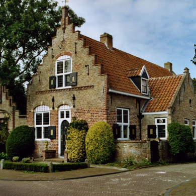 "Het Anker". HUIS met trapgevel, XVII, met muizetand, ontlastingsbogen, metselmozaïek, sierankers. Aan de linkerzijde hierbij aangebouwd een tuinpoort, XVII, afkomstig van een huis te Zierikzee.