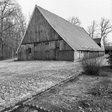 Op het ten dele met veldkeitjes bestrate erf staat een grote eind-19e-eeuws aandoende schuur met een in aanleg vermoedelijk nog laat-18e-eeuws ankerbalkgebintstelsel; het, door een met Hollandse pannen belegd zadeldak gedekte, gebouw rust ten dele op een plint van Bentheimer zandsteen en is, voor wat betreft de voor- en achtergevels met hout beschoten; de zijgevels zijn later voor het grootste gedeelte versteend; windveren langs de geveltoppen. Zolderluiken en raam- en deuropeningen van verschillende omvang, vormgeving en datering.