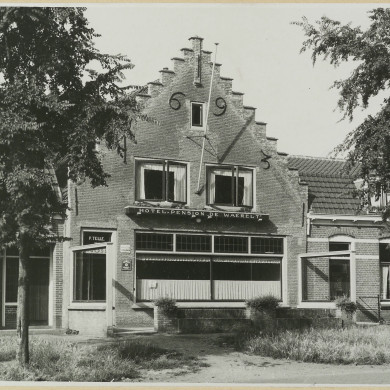 HUIS met trapgevel, XVII. Overhoekse toppinakel, muizetand, sierankers, ontlastingsbogen boven de vensters. Aangebouwd zijstuk. Kap links vernieuwd en dakkapellen toegevoegd. Vensterindeling en voordeur gewijzigd.