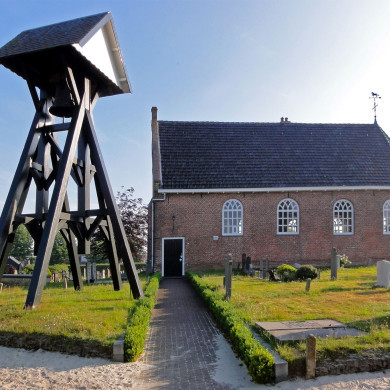 Eenvoudig bakstenen schoolmeesterswoning (XIX B), onder (thans met sneldekpannen belegd zadeldak; windveren met makelaar langs de geveltop. Lichtgetoogde zesruitsschuifvensters; dito vierruitsvensters en gepaneelde ingangsdeur met sierrooster en bovenlicht met gesneden levensboom.