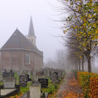 Herv. kerk. Eenvoudig eenbeukig kerkje uit 1806 met ruiter boven de westgevel.