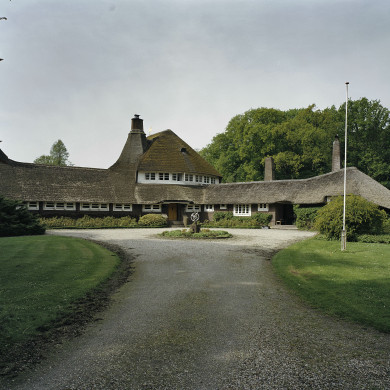 In Amsterdamse Schooltrant gebouwd LANDHUIS (1920), naar ontwerp van P. Vorkink en Jac.Ph.Wormser (1918-1919), opgetrokken in baksteen op een markante plattegrond, waarvan de voornaamste contouren golvende lijnen tonen. Het bezit twee langgerekte, asymmetrische vleugels, die onder een stompe hoek verbonden zijn met de enigszins ovale middenpartij, die is verhoogd met een houten kapverdieping, terwijl de rechtervleugel in het midden een poortvormige doorgang bevat. Het geheel wordt afgedekt met golvende rieten kappen, waarin de schoorstenen een markeringspunt vormen van elk der drie partijen. Aan voor- en achterzijde ritmisch gekoppelde vensters, merendeels met horizontale roedenverdeling - op de verdieping aan de tuinzijde ook wel met diagonale verdeling - en met in Amsterdamse Schooltrant geprofileerde omlijsting uit de bouwtijd. Ingangspartij met gemetselde stoep en versierde paneeldeur uit de bouwtijd. Inwendig in het hoofdvertrek een gelaagd plafond met in Amsterdamse Schooltrant uitgevoerde betimmering - plinten, omlijstingen en hoge lambrizeringen - met ring - blokvormige decoraties, en een smeedijzeren haard in dezelfde trant; aan de terraszijde ingebouwd een vijftal glas-in-lood bovenlichten, afgeschuind aan de onderzijde. In de gangen zwart-gele vloertegeltjes in gebroken meanderpatroon belegd en blauw/rode tegellambrizering. Landhuis, in plattegrond, opstand en interieur kenmerkend voor de bouwwijze van de Amsterdamse School van bijzondere waarde uit kunt- en architectuur-historisch oogpunt.