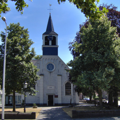 N.H. Kerk. Eenvoudig gepleisterd zaalkerkje; forse dakruiter op het zadeldak. Rondboogvensters. Klokkenstoel met klok van Nicolaus, 1315?, diam. 85,5 cm. Mechanisch torenuurwerk B. Eijsbouts, Asten met electrisch aangedreven uur- en slagwerk.