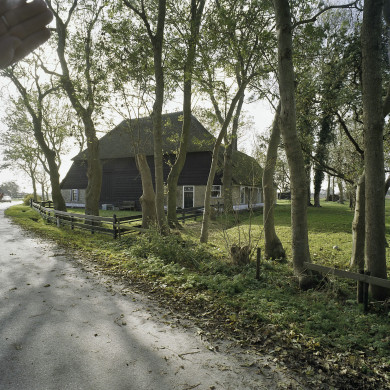 Boerderij van het Wieringer type. Vooreind sterk vernieuwd; typische schoorsteen tegen het bedrijfsgedeelte.