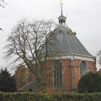 Ned. Herv. Kerk. Eerste in ons land voor de protestantse eredienst gebouwde kerk, in 1597 begonnen naar ontwerpen van Andries de Roy en Coenraad van Horenborch die tevens het steenhouwwerk leverde; in 1607 voltooid, in 1791 hersteld; in 1950, tijdens het herstel van oorlogsschade, uitgebrand. Achtkante centraalbouw met onvoltooide vierkante toren (het "baarhuis") en sacristie. Rode baksteen en lijsten en vensterneggen van Naamse steen. Inwendig met halfronde toscaanse wandpilasters en houten koepelgewelf. Boven de ingang naar de Voorstraat een steen met opschrift aangaande inwijding (1607) en herstelling (1791). Eiken kansel uit 1659, afkomstig uit de kerk van Hoogvliet, en enige banken uit omstreeks 1670, afkomstig uit de kerk van Graft. Mechanisch torenuurwerk, Eijsbouts, elektrische opwinding. In de kerk en erbuiten, op het omgrachte kerkhof, vele grafzerken.