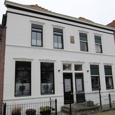 Huis onder schilddak, waarvan de gepleisterde lijstgevel een geheel vormt met die van het buurpand nr 52. Door stucversiering met kuiven omlijste vensters. Gevelversiering uit XIXc. Boven de ingang het opschrift: "Ant. Kenniphaas GeLeGGDen eersten steen 9-5-1899".