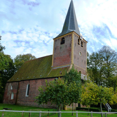 Herv.Kerk en toren op kerkhof. Eenbeukig kerkgebouw, waarvan waarschijnlijk de zuidmuur van het schip nog 12e eeuws kan zijn. Het koor vertoont kenmerken van de 13e eeuwse bouwtrant; kap belegd met romaanse pannen. Toren met aanbouwen 18e eeuws. De kerk bezit een offerblok uit 1692, talrijke zerken uit de 17e eeuw en jonger. Klokkenstoel met klok van N. Sickmans, 1633, diam. 122 cm. Mechanisch smeedijzeren torenuurwerk T. Pijttersz., Leeuwarden, 1633.