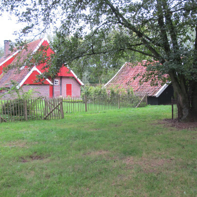 "De Oude Vlaskamp". Gaaf bewaarde Saksische BOERDERIJ (XVIII) met stijl- en regelwerk en pannen dak. Waterput. De hoeve is mooi aan de bosrand gesitueerd. Linker zijgevel deels vernieuwd.