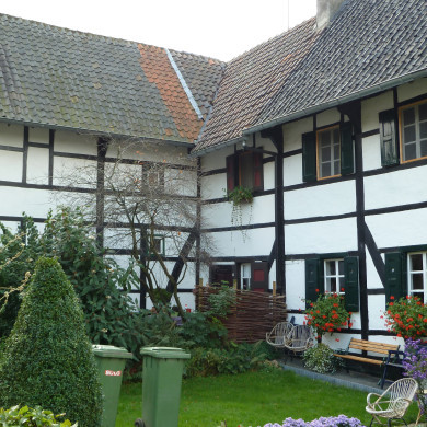 Aan de overzijde van de weg een bakhuisje van vakwerk, XVIII.