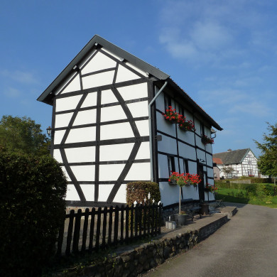 HOEVE van vakwerk, XVIII. Topgevel met planken bekleed.