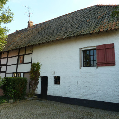 Huis van vakwerk, met een bakstenen stal, XVIII-XIX. Met het buurnummer 9 deel uitmakend van een U-vormig complex.