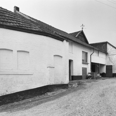 Huizen van vakwerk en plaatselijk in baksteen vernieuwd, XVIII. Witgeverfd. Schuur van baksteen en vakwerk (nr. 7), onder een dak met het huisnummer 3.