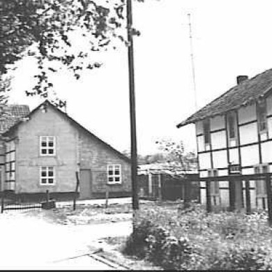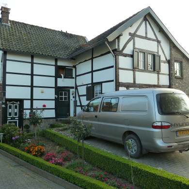 Vakwerkhuisje, XIX, met nieuwere eindgevel van baksteen.