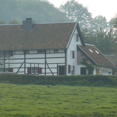 Op de Weide; vakwerkhuis, XVII-XVIII, met dakoverstek op schoren; bovendorpel met 16.. niet meer aanwezig.