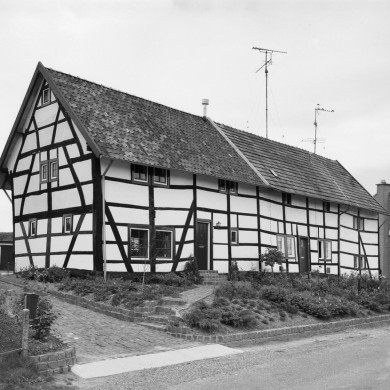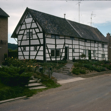 Groot VAKWERKHUIS met overstekend dak en tweelichtvensters, XVIII.