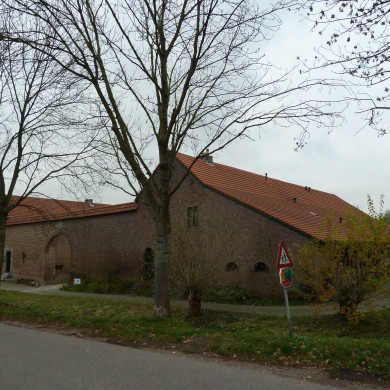 Haakvormige hoeve met vakwerkwoonhuis, XVIII, met geschoord dakoverstek, en bakstenen schuur uit 1869. Losse vakwerkschuur aan de weg, XVIII.