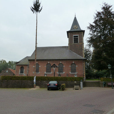 PASTORIE, XVIII B. Groot bakstenen huis met verdieping en zadeldak. Voorgevel van vijf traveeën. Ingang en vensters in segmentboogomlijstingen van Naamse steen. Tuinmuur met plaatselijk speklagen en beeldnis 1817. Op de noordoostelijke hoek voorm. tuinhuisje.