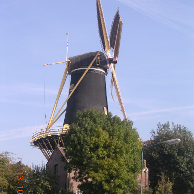 Korenmolen "De Windhond". Monumentale stellingmolen met gemetselde cinische romp, gebouwd op een molenberg, welke is opgeworpen op een bolwerk. De molen is op de baard en op een stichtingssteen gedateerd 1755.