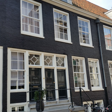 Huis van het "Noortse-Bos-type" (plm 1670, verbouwd tot beneden- en bovenwoningen). Bovenlichten XIXb) ? Goede roedenverdeling nieuw ?