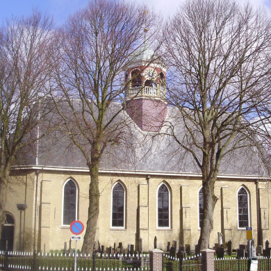 Ned. Herv. Kerk. In 1633 in gotiserende trant herbouwde kerk en in 1819 aan de westzijde eveneens van driezijdige sluiting voorzien en met klokkenkoepel op de nok bekroond. Mooi 17e eeuws meubilair, preekstoel, banken, zerk door B.G. 1541. Orgel met Hoofdwerk en Bovenwerk, in 1855 door L. van Dam en Zonen gemaakt. In de klokkenkoepel hangen twee klokken, waarvan één van J. de Bomen?, 1433, diam. 94 cm. en één van J. Balthasar, 1656, diam. 118 cm.