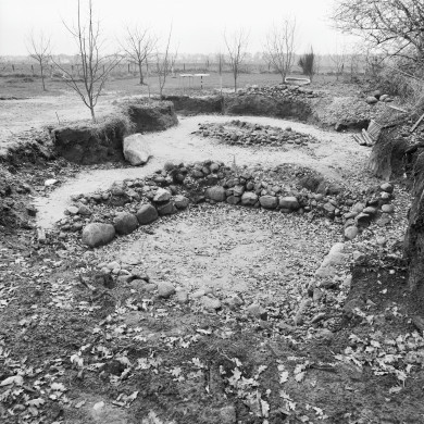 Bij graafwerkzaamheden in het zicht gekomen enkele meters diepe schacht van een waterput, die is opgebouwd uit zorgvuldig op een houten raamwerk gestapelde veldkeien.